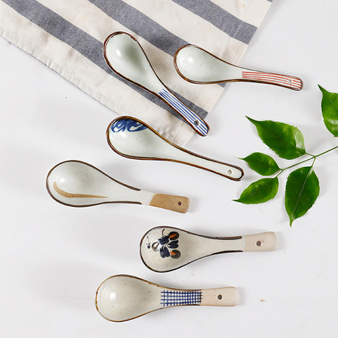 כף מרק קינוח קרמיקה בסגנון יפני ואכילת כפית עם סגנון סיני אופנתי